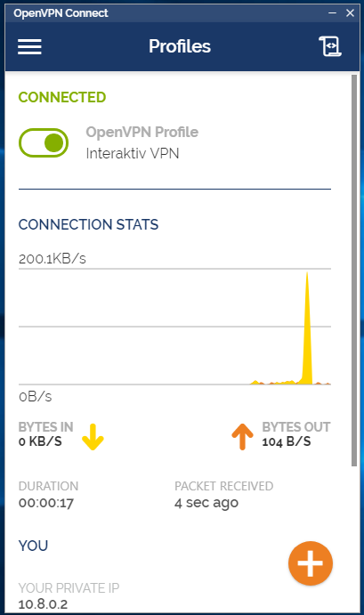 Wenn alles funktioniert hat, besteht nun eine Verbindung mit dem VPN Server.