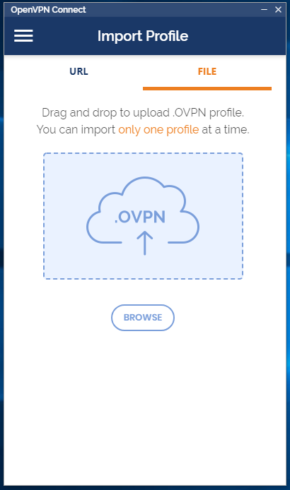 Jetzt kann eine Konfigurationsdatei importiert werden. Dazu auf den Tab "FILE" wechseln und die entsprechende Datei entweder per drag&drop oder per Klick auf "Browse" einfügen.